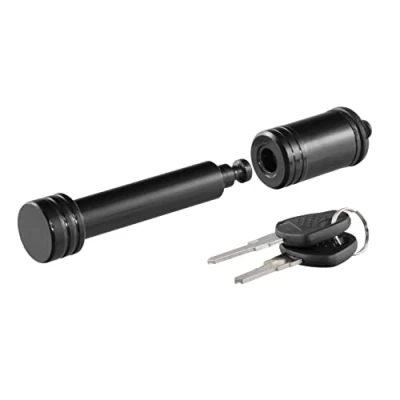 DEPENDABLE SECURITY. To protect your trailer and trailer hitch ball mount from theft, this locking hitch pin is made with high-strength steel construction EASY TO OPERATE. The barbell-style locking hitch pin promotes an impenetrable appearance to deter theft, and uses a simple 1/4-turn lock activation for convenient locking and unlocking as needed VERSATILE. With a 5/8-inch diameter pin and 2.85 inches of usable pin length, this receiver hitch lock fits virtually any 2-inch x 2-inch hitch receiver with a 5/8-inch hole (not compatible with double-walled receiver tubes) WATERTIGHT. The internal components of this hitch lock can easily be protected from the elements with the included watertight dust cap, while the entire hitch lock is shielded against corrosion with a durable powder coat finish TWO KEYS INCLUDED. For your convenience, two keys are included with this trailer hitch lock. You can keep the spare key in a discrete location for emergencies or give it to a friend for helpful access Watertight dust cap prevents internal corrosion NOTE : Key style will vary