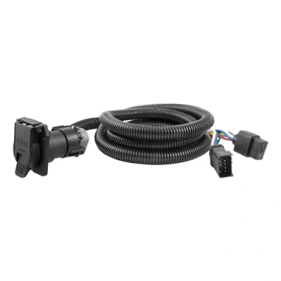 Routes a 7-way RV blade socket into truck bed while retaining use of rear socket Simple plug-and-play design eliminates the need for cutting or splicing Allows for easy connection of 5th wheel or gooseneck wiring 7-way connects tail, brake, reverse, turn signals, brakes and auxiliary power 7' extension with right-angle plug for easy installation