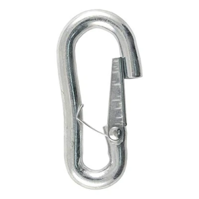QUICK RELEASE. This snap hook is equipped with a spring-loaded latch for secure attachment of your safety chains to your trailer hitch and quick release as needed HIGHLY VERSATILE. Add useful, versatile towing options to your vehicle with this class 1 trailer hitch. It provides a standard 1-1/4-inch x 1-1/4-inch receiver hitch, allowing you to tow a small trailer or mount a cargo carrier or bike rack READY TO TOW. Trailer safety chain hooks are easy to install. Simply loop the hook onto the end of the safety chain and connect the hook to the trailer hitch loop before towing VERSATILE. Safety chain hooks are great for a wide variety of uses, beyond towing. This 7/16-inch diameter snap hook can be used to attach cargo straps or ropes or as a hand winch attachment hook for a quick connection CORROSION-RESISTANT. To promote long-lasting use and dependable safety, this carabiner safety chain hook is finished with a durable zinc plating. It resists rain, dirt, snow, mud and other corrosive elements