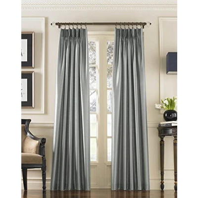 Lined faux silk fabric with subtle shimmer and pinch-pleat construction 100% Polyester 4-inch wide back tabs Machine washable Panel is sold individually