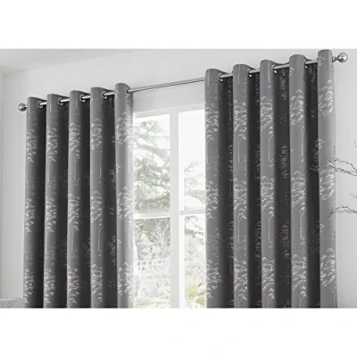A subtle metallic sheen design from Curtina gives this heavyweight jacquard fabric a quality, contemporary feel. The creative force of UK curtains, Curtina continues to be the UK's premier curtain brand offering a range of beautifully designed and expertly made curtains that will grace any room Size is (WIDTH x DROP) per curtain panel (2 panels per pack) | Eyelet curtains can only be used on a curtain pole Fabric: 100% polyester | Care: Dry clean only, iron on low on face only Ready Made Pair of lined Lined Eyelet Curtains. Complete the look by buying the matching Elmwood Graphite Cushions