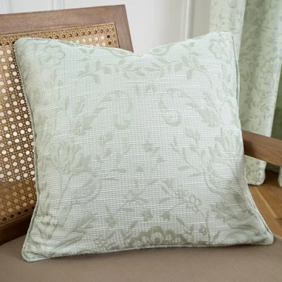 Curtina Sage Green Floral & Bird Woven Cushion (43 x 43cm) Vintage Flower for Living Room/Bedroom Filled (Cushions with Covers Included) Matching Curtains Available