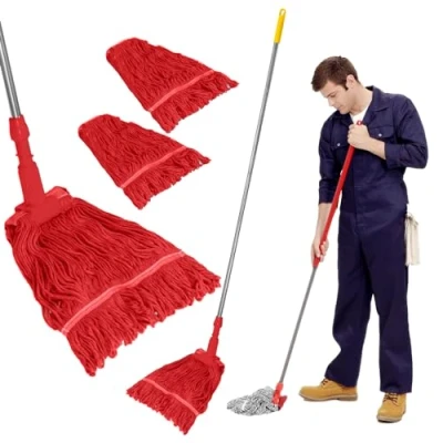 Curvaso Kentucky Mop Handle and Holder with 2 Reusable Heads Home Commercial Floor Cleaning Red