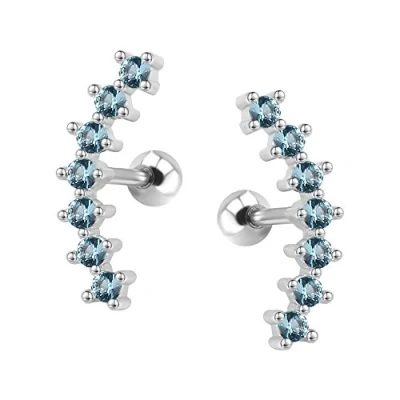 Curve Seven Stud CZ Earrings 316L Stainless Steel Ear Helix Conch Cartilage Piercing (Light Blue)