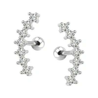 Curve Seven Stud CZ Earrings 316L Stainless Steel Ear Helix Conch Cartilage Piercing (White)