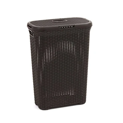 Curver 193009 Faux Rattan Laundry Basket 40 Liters Polypropylene 44.7 x 26.5 61.5 cm chocolate