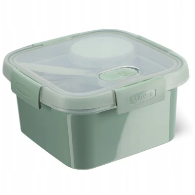Eco-friendly lunchbox for every occasion Looking for a spacious lunchbox that can hold both a second breakfast and a little something for dessert? Do you value practicality? Food containers that are easy to open, close tightly, and are easy to wash? Or perhaps you prioritize eco-friendly solutions for the planet? That's great, because our box with clips lets you pack plenty of food for work that you can heat up in the microwave in moments! Lunchbox made from 100% recycled materials Did you know we are the only manufacturer to offer food containers made from 100% recycled materials? Be eco-friendly and invest in our box made from recycled polypropylene. It's a scratch- and crack-resistant material, so the container will retain its pristine appearance for longer. Therefore, it will serve you well for many years, and you won't have to buy new lunchboxes for your child every now and then! A lunchbox with a valve at a great price Is it possible to buy a nice and spacious lunchbox that can