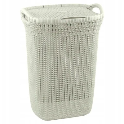 Curver Knit Laundry Storage Hamper, Oasis White, 57 Litre