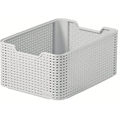 Curver Style Rattan Effect Kitchen, Living room, Bathroom, Bedroom, Utility Medium Rectangular Storage Basket 18 Litres Grey