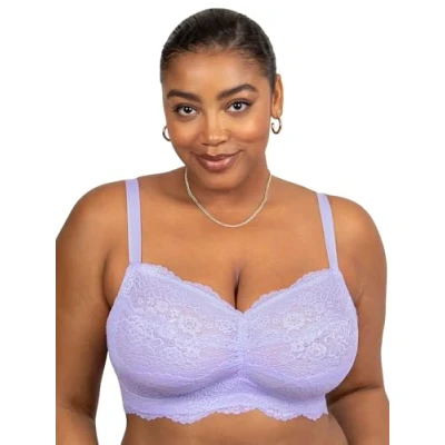 Curvy Couture Women's Luxe Lace Wireless Bralette Full Coverage Bra, Lavender Mist, Large More