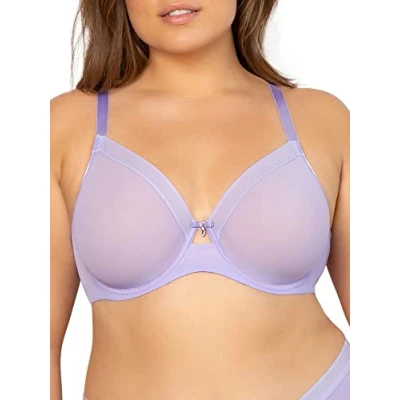 Curvy Couture Women's Sheer Mesh Full Coverage Unlined Underwire Bra, Lavender Mist, 44C