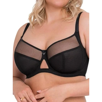 Fuller balcony cup gives everyday coverage and 4-part cups with side support panels adds projection Double mesh bottom cup section for uplift and support Underwired, non-padded, semi-sheer cups Fully adjustable straps (30-36 D-F 15mm; all other sizes 18mm) Sizes 30-36 D-F fasten with 2 hooks, 3 columns; all other sizes fasten with 3 hooks