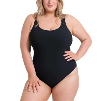 Dual cup size with seamed cup mesh liner for great shape & support Smooth outer skin with squared neckline Scooped leotard back for full swim movement Chlorine resistant and fast drying fabric Internal front fastening