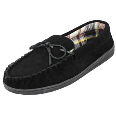 Cushion Walk Mens Real Suede Leather Moccasin Slippers Size 7 12 (UK 11/EU 45, Black)