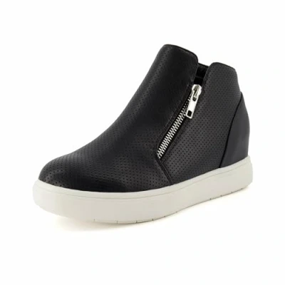 CUSHIONAIRE Women's Hart Hidden Wedge Sneaker +Wide Width Available, Black Pu 4 UK