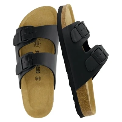 CUSHIONAIRE Women's Lane Cork Footbed Sandal with +Comfort, Black Oily 5 UK