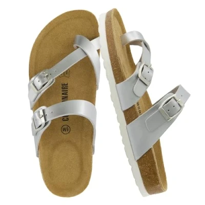 CUSHIONAIRE Women's Luna Cork Footbed Sandal with +Comfort, Silver, 6.5 UK