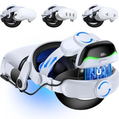 【Magnetic 10000mAh Battery Pack for Quest 3s/3 /Quest 2 Head Strap】: The high-capacity 10,000mAh magnetic power bank extends gameplay by 3–4 hours. Its magnetic design allows easy and secure attachment to the meta quest 3 head strap,ensuring a stable fit even during intense movement without shaking or dislodging. With a clear power display screen, you can easily check the remaining battery level, say goodbye to low-battery anxiety, and fully immerse yourself in the VR gaming world. 【Cushioned Head Strap Enhanced Support】: The support pad of the VR headset Oculus Quest 3 is removable and washable, offering improved breathability and reduced pressure.The head strap features a top support and rear pad made of soft, skin-friendly fabric with slow-rebound memory foam. Our Oculus Quest 2 head strap offering improved breathability and reduced pressure.This VR headset oculus elite strap replacement perfect reduce head pressure,keeping its shape even under pressure. 【Convenient Flip-Up Design 】: This Quest 3 headstrap with a flip-up and user-friendly feature.Easily flip the headset up by 45° without removing the strap, allowing quick access to real-world activities like drinking, answering calls, or opening doors. you can easily flip up the Quest 2/Quest 3/3s to check your surroundings without needing to loosen the knob to remove the head strap. This design is especially convenient for those who wear glasses! 【Complete Package with Practical Accessories】: Head strap for meta quest 3s/quest 3 with 10000mah magnetic battery pack set comes with a 0.5m USB-A to USB-C charging cable for the battery and a dedicated dust-cleaning cloth, making it easy to maintain your headset and keep visuals clear. One headset kit easily meets your daily gaming needs, eliminating the need to purchase additional combinations — saving you cost, durable and eco-friendly! Ultimate Choice for the Best Gaming Experience:Adaptive front headrest design evenly distributes the weight of Quest 3/3S, reducing facial pressure and offering a comfortable fit for extended use, even without the facial interface; ensure a secure fit for all head sizes, adult&kids vr headset ideal for gaming, movie-watching, and productivity,Perfect to as a amazing gift for Christmas, thanksgiving and other special occasions