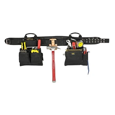 4-piece, 17-pocket carpenter's combo belt with an easy carry handle design for storage and transportation without spilling Totally versatile -- all parts are removable and interchangeable Double layer of rugged, ballistic polyester fabric; Sta-open feature on main reversed pockets 5-inch wide padded comfort belt with double tongue steel roller buckle International products have separate terms, are sold from abroad and may differ from local products, including fit, age ratings, and language of product, labeling or instructions., Weight: 3.4 Pounds, Manufacturer: Custom Leathercraft