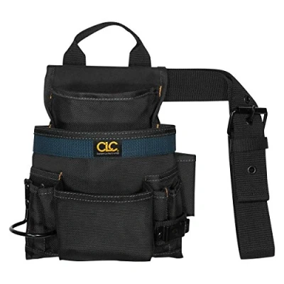 Double layer of rugged, lightweight ballistic poly fabric Innovative handle design for easy adjustment and carrying Three main nail and tool pockets and seven smaller pockets for pliers, pencils, nail sets etc Metal clip holds all measuring tape sizes Two inch wide web belt with single tongue roller buckle, fits waist sizes 29-inch to 46-inch, Weight: 1.0 pounds, Manufacturer: Custom Leathercraft
