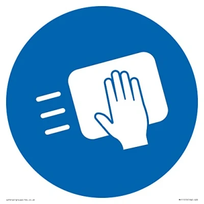 M915 : Disinfect surfaces This sign is made from vinyl high tack A stickier sticker. Uses a stronger adhesive to make it more suitable for plastic surfaces like Wheelie Bins or where the sticker might get rubbed. S20 square Sign Text: