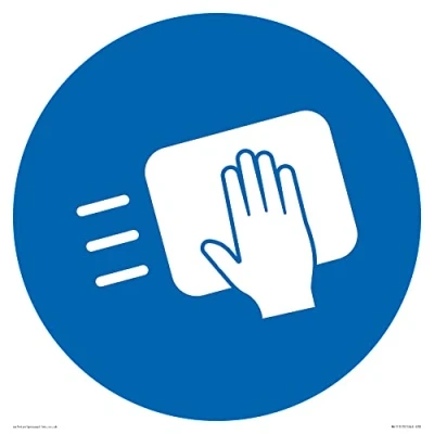 M915 : Disinfect surfaces This sign is made from plastic semi-rigid 1mm 1mm thin plastic sign, can be screwed, stuck with adhesive, or attached with cable ties. Not suitable for hanging. S30 square Sign Text:
