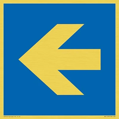 M930 : Left arrow This sign is made from vinyl gold sticker Gold metal effect sticker for flat, clean surfaces. Not for rough, plastic, or dusty surfaces. S20 square Sign Text: