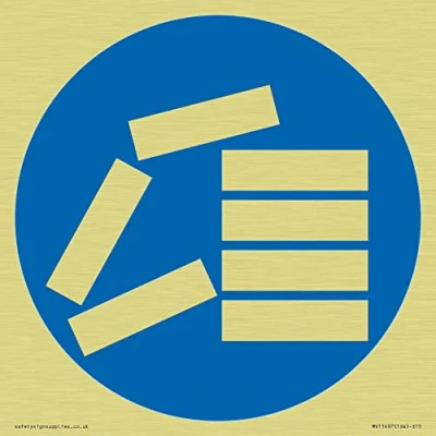 M904 : Stack correctly This sign is made from champagne aluminium S15 square Sign Text: