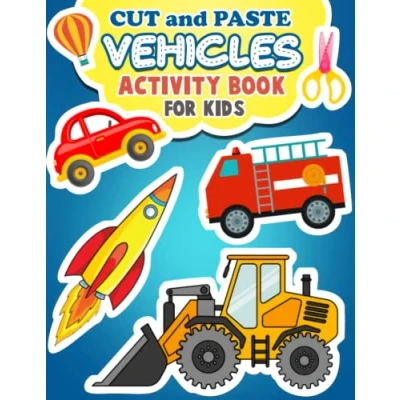 Cut and Paste Vehicles Activity Book for Kids: Over 50 Color, Fun Designs with Airplane, Air Balloon, Boat, Car, Construction Vehicles, Helicopter, Rocket, Train Many More Vehicles!