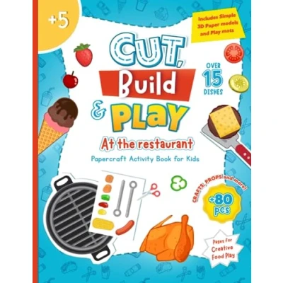 Cut, Build and Play. At the restaurant: Papercraft Activity Book for Kids. Includes Simple 3D Paper models Play mats Creative Food
