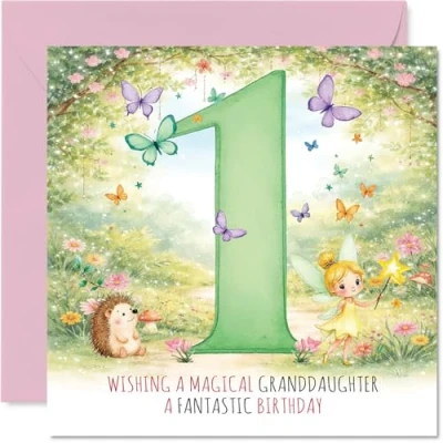 Bursting with cuteness, this enchanting design features a cheerful fairy and friendly hedgehog surrounded by fluttering butterflies, sure to delight on her special day The pastel green number one pops against a dreamy garden backdrop, with charming details like twinkling wings and sweet flowers adding extra magic Printed on gloss single sided board with an uncoated inside for easy writing. No smudging when writing inside. Printed on 360 micron stock for a confident, premium feel Blank inside so you can add your own heartfelt message. Includes a matching envelope for added convenience. The 145mm Square format is convenient to display or post Proudly made in the UK with FSC-certified and fully recyclable materials - a card that feels as good as it looks. Printed in the UK. A thoughtful choice that helps you send smiles and warm wishes