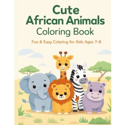 Cute African Animals Coloring Book: Fun & Easy for Kids Ages 78 (Little Explorers Adventures)
