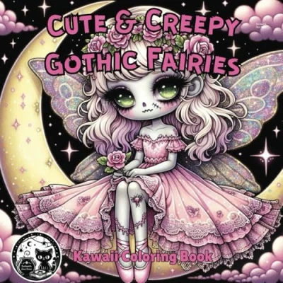Cute and Creepy Gothic Fairies Kawaii Coloring Book for Kids, Teens, Adults: Zombie Fantasy Activity Pages with Black Background Relaxation