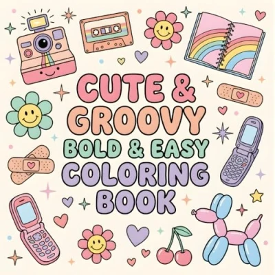 Cute and Groovy Bold Easy Coloring Book: for Adults & Kids, Simple Big Cozy Designs Featuring things Relaxation
