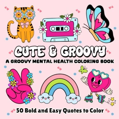 Cute and Groovy Mental Health Coloring Book: 50 Bold Easy Designs with Uplifting Quotes for Adults, Women, Teens, Kids & Seniors (Bold Coloring)