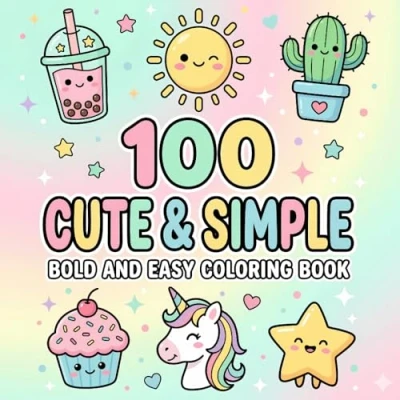 Cute and Simple Coloring Book: 100 Bold Easy Designs for Adults, Teens, Beginners Fun Relaxing Pages Stress Relief