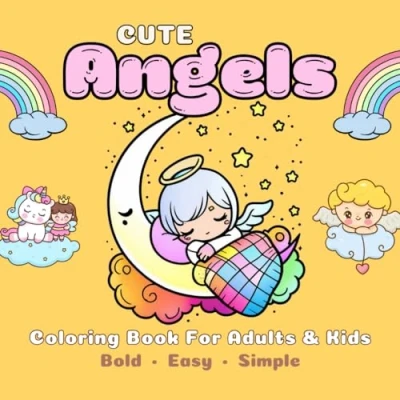 Cute Angels: 40 Bold and Easy Coloring Book Kawaii Angels for Adults Kids Relaxation Stress Relief Big Simple Designs (Bold & Books)