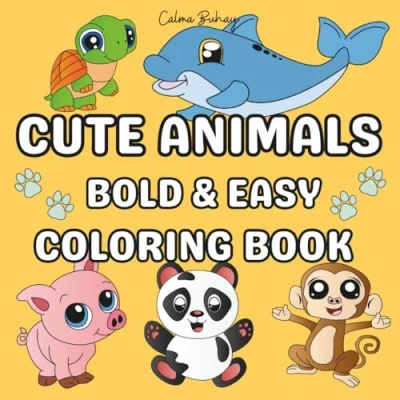 Cute Animals: Bold & Easy Coloring Book for Adults Kids (Fun Simple Designs)