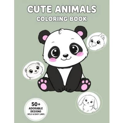 Cute Animals Coloring Book: 50 Adorable and Easy Kawaii Illustrations for Kids, Teens, Adults Bold Designs Stress Relief Relaxation