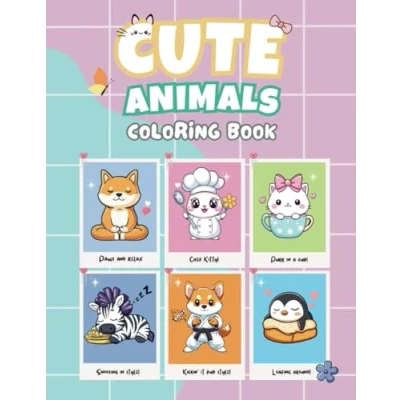 Cute Animals Coloring Book: 50 Bold and Easy Kawaii Animal Pages for Kids Adults