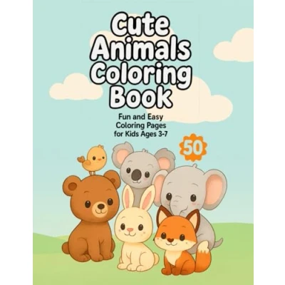 Cute Animals Coloring Book: 50 Fun and Easy Pages for Kids Ages 3 7