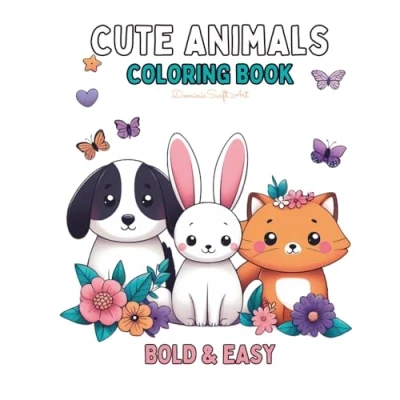 Cute Animals Coloring Book: Bold and Easy Book for Kids Adults: Big Simple Large Print Animal Pages Adults, ... & Stress Relief (Simple Book)