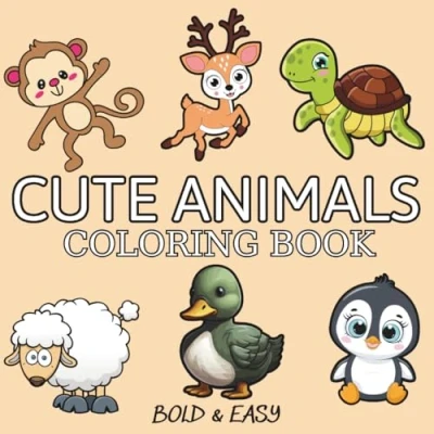 Cute Animals: Coloring Book For Adults & Kids, Simple and Big Designs Featuring Animals Many More (Bold Easy Coloring)