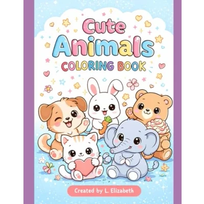 Cute Animals Coloring Book for Kids Ages 48: Kawaii Pets, Baby & Fun Easy Pages