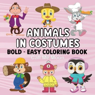 Cute Animals In Costumes Bold and Easy Coloring book: Featuring Simple & adorable Pets For Adults Kids
