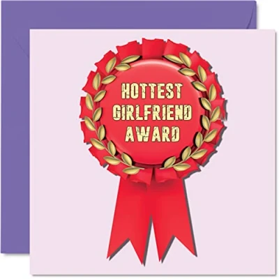Cute Anniversary Card for Girlfriend Hottest Award Rosette Funny Women Her from Boyfriend, 145mm x Birthday Valentines Day Greeting Cards Fiance Fiancee