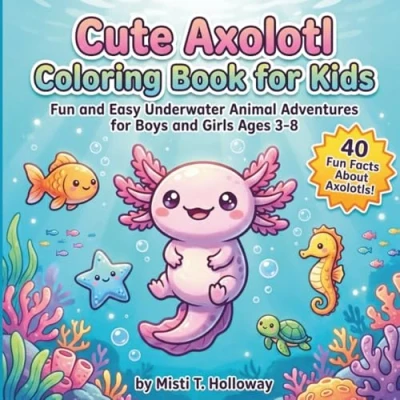 Cute Axolotl Coloring Book for Kids: Fun and Easy Underwater Adventures with 40 Adorable Pages Facts About Axolotls Kids Ages 38