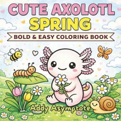 Cute Axolotl Spring: Bold and Easy Coloring Book