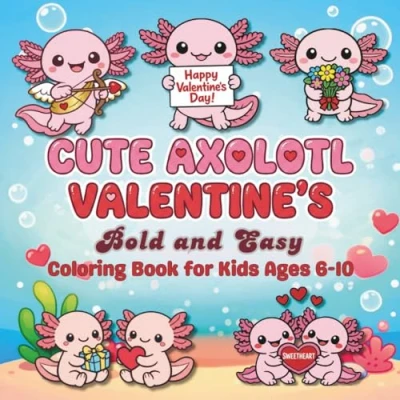 Cute Axolotl Valentine's Bold and Easy Coloring Book: For Kids Ages 6 10