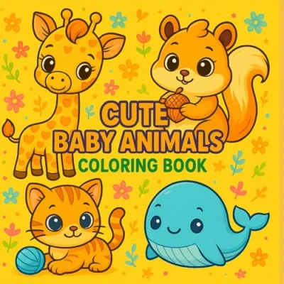 Cute Baby Animals Coloring Book: For Kids Ages 4 8